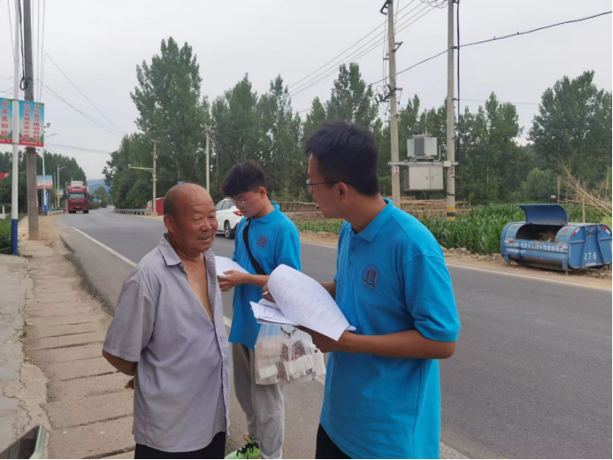 社会服务队分为两组,每三人一组,在当地进行走访调查,队员们和不同的村民进行交流,以问卷的形式了解南水北调中线工程水源水质、当地民情民意、乡村发展状况及生态环境发展情况。调研结束后,成员们进行调研结果汇总,分析乡村发展面临的问题,总结值得借鉴经验,让成员们更加了解当地发展生产。