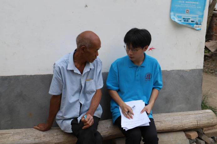 图为志愿服务队成员与当地村民交流了解当地民生,民情以及当地发展状况。