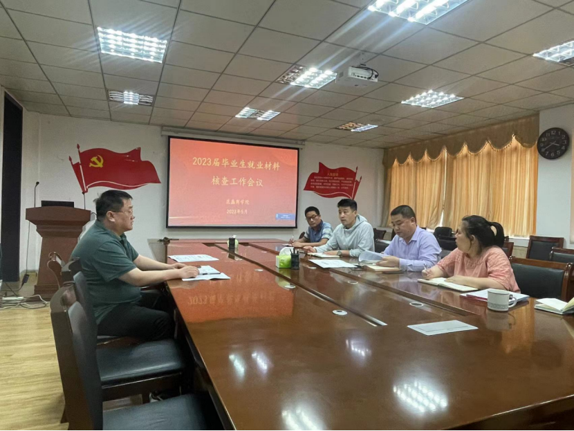 本网讯(特约记者/殷朝兵)为了确保2023届毕业生就业统计数据的准确真实性。5月31日,范蠡商学院召开2023届毕业生就业材料材料核查工作会议,学院党委书记闫合占、党委副书记李冬生、辅导员张煜梵、袁健,就业专干殷朝兵参加会议。