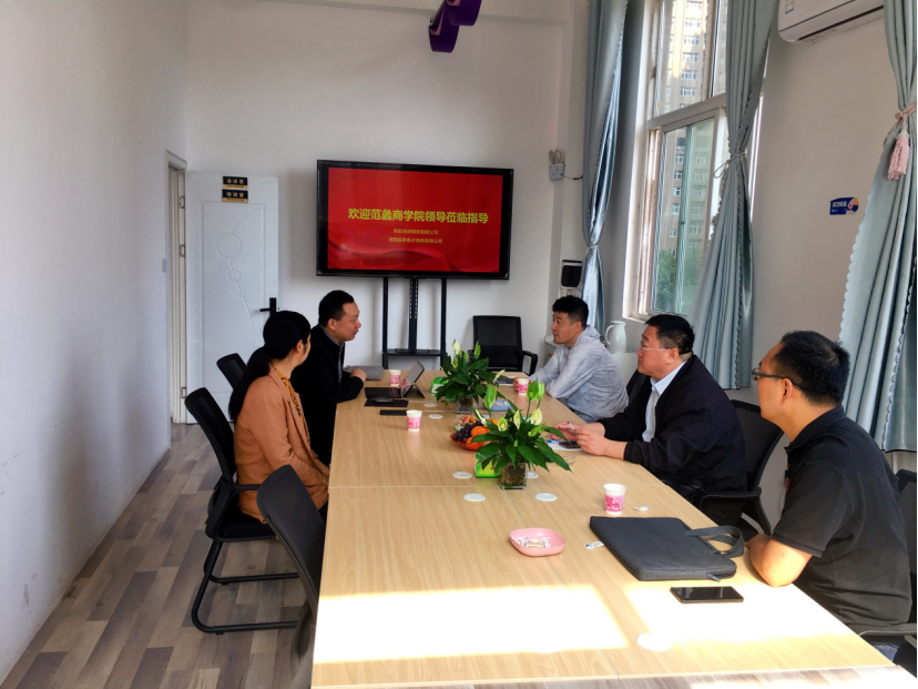 在河南振泰电子商务有限公司,听取了于太超总经理关于公司现运营状况及未来发展方向的介绍。双方就进一步推进实习就业、产教融合、人才培养等方面进行充分交流。于太超总经理表示,学院与企业之间具有良好的合作基础和共同愿景,希望能够建立长效沟通机制,推进双方深度合作、务实合作。