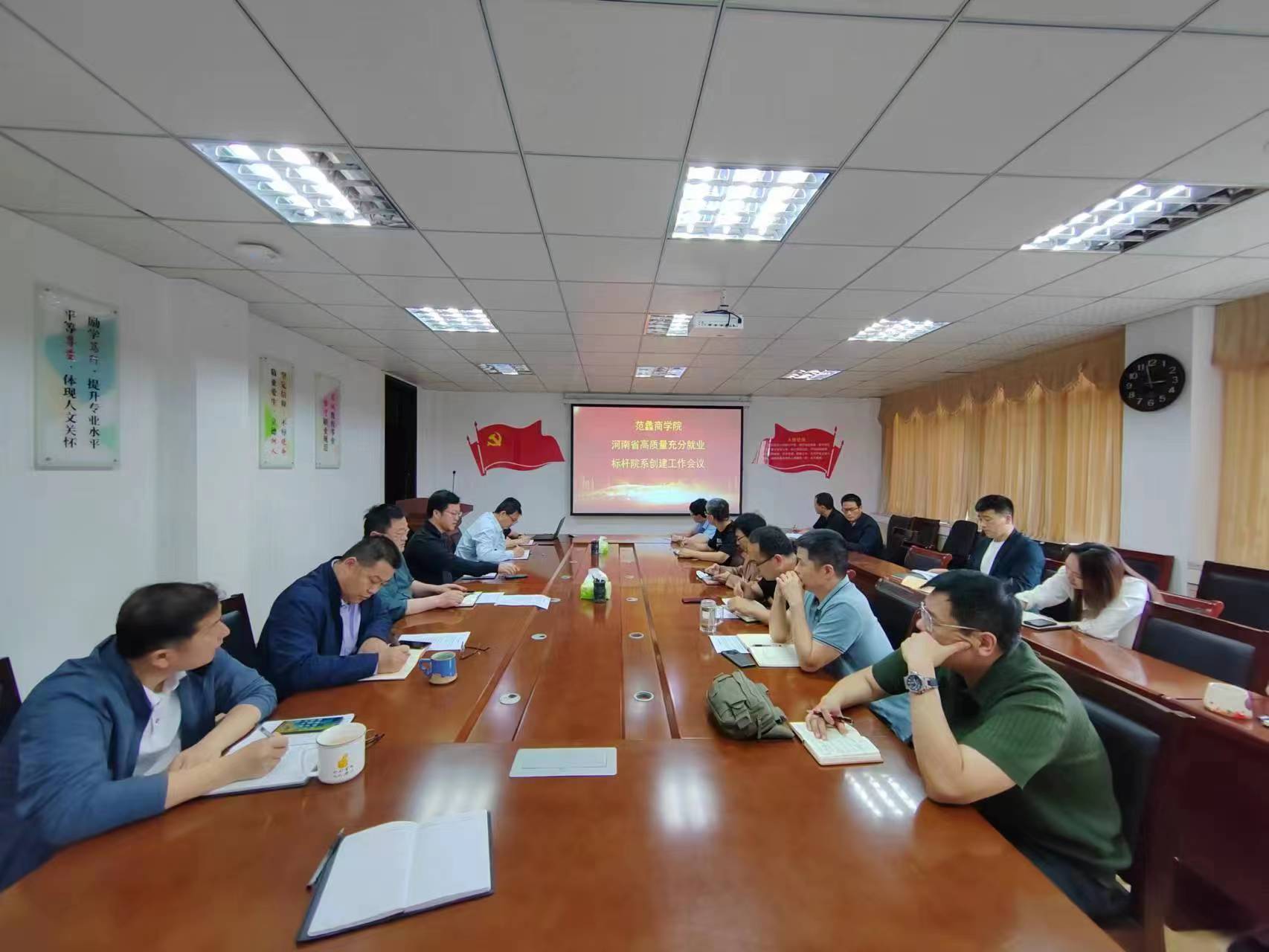 本网讯 (特约记者 袁健) 6月5日下午,范蠡商学院在学院会议室召开“河南省高质量充分就业标杆院系”创建工作推进会。学院领导班子、各教研室主任以及学院就业工作相关教师参加了此次会议。