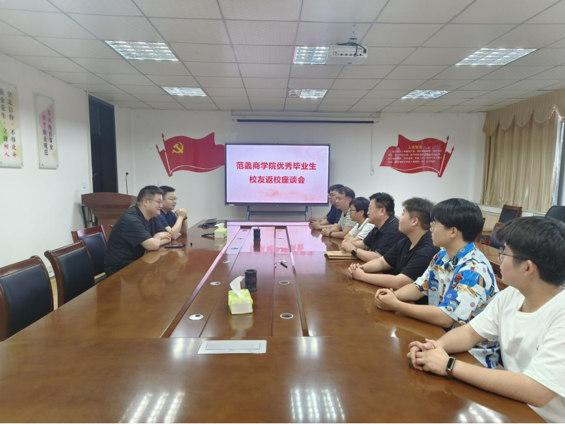 本网讯(通讯员/刘炳坤)6月29日,范蠡商学院召开优秀毕业生返校座谈会。学院党委书记闫合占、副院长周青浮以及专职组织员赵明铎出席,优秀毕业生周博膺、韩高翔参加以及部分在校学生参加。