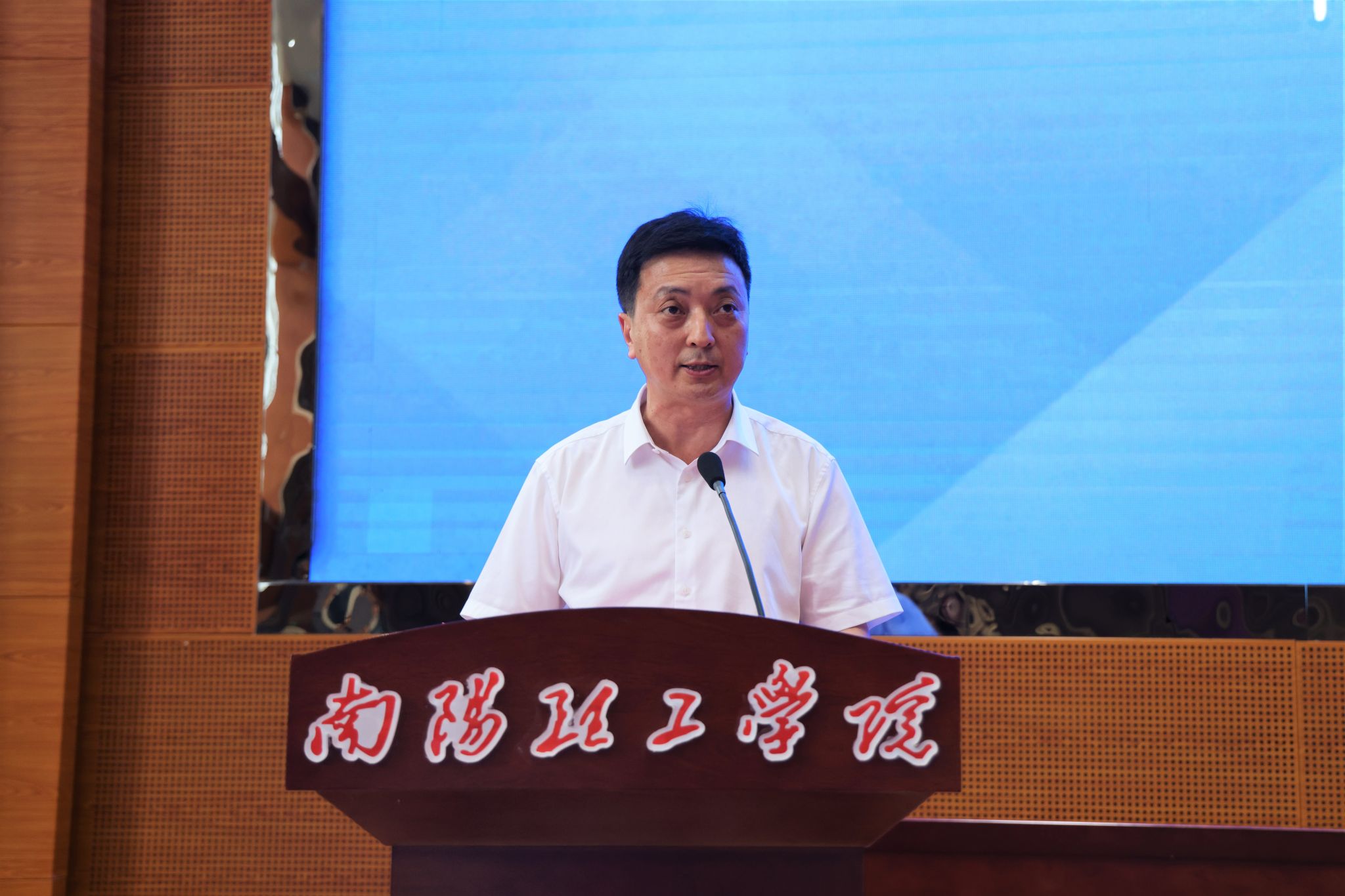安士伟指出南阳理工学院始终坚持“为党育人、为国育才”的初心使命,秉承“不甘示弱”南工精神,践行“立本、立真、立特、立新”的办学理念,奋发作为,锐意进取,为服务南阳省域副中心城市高质量建设和中原高等教育更加出彩积极贡献力量。范蠡作为中华文明历史上璀璨的巨星,其商业思想是南阳宝贵的经济文化遗产,南阳理工学院作为商圣故里的高校,始终以传承和弘扬范蠡商业思想为己任,学校鼓励和支持广大教师立足学校、创业南阳、服务河南,为当地社会经济发展做出了应有贡献。范蠡经济文化研讨会在我校举办,充分体现了市委市政府及学界对我校的信任和厚爱,相信在学界专家领航、引路下和南阳市各级政府的全力支持下,南阳理工学院的事业一定能够取得更快更好的发展。