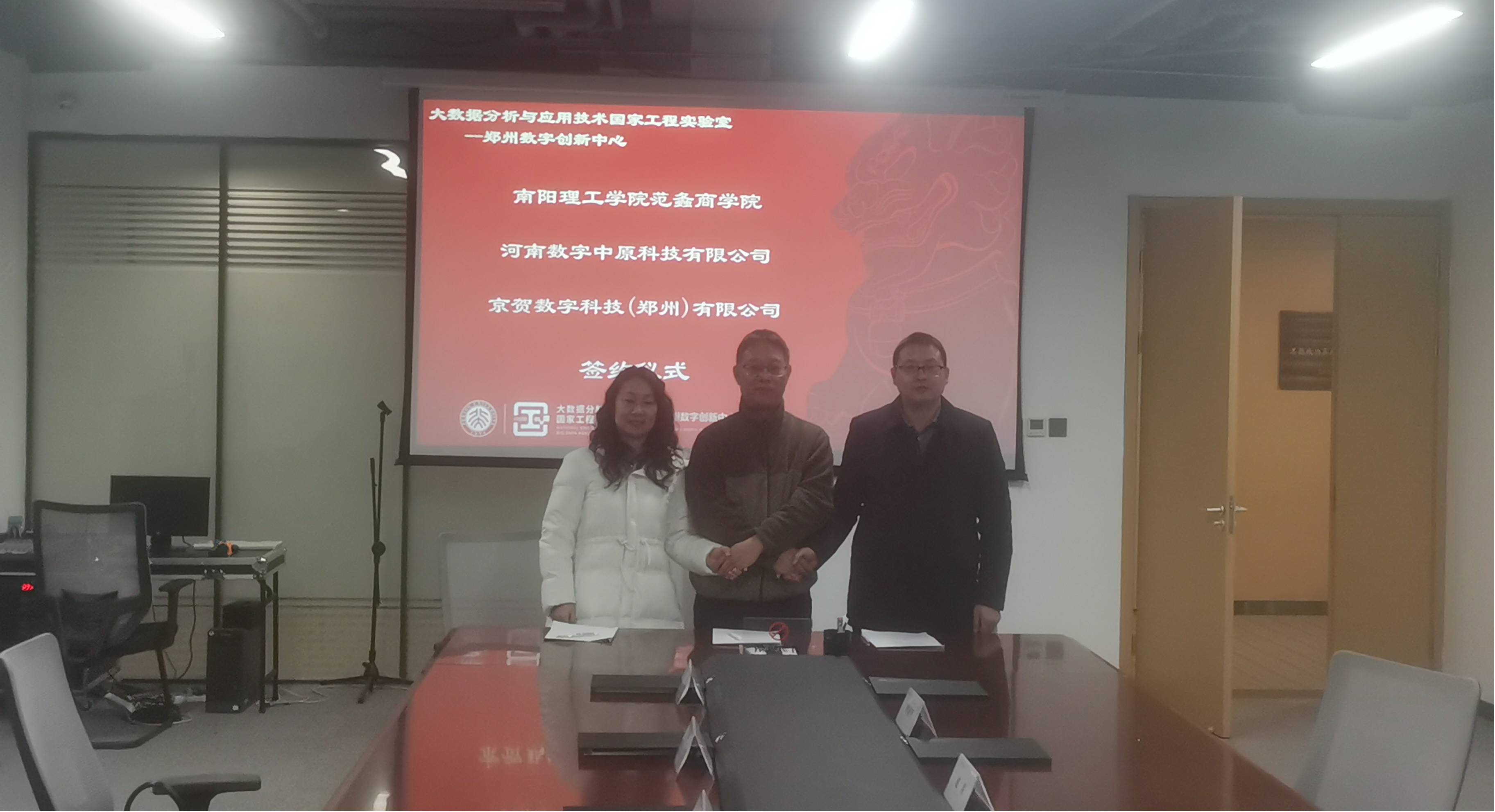 本网讯(特约记者/殷朝兵)1月9日下午,范蠡商学院院长郭永奇、副院长周青浮赴京贺数字科技(郑州)有限公司与大数据分析与应用技术国家工程实验室郑州数字创新中心(以下简称“郑州数字创新中心”)正式签订战略合作协议,标志着三方在人才培养、科研创新、产学研合作等方面开启了深度合作的新篇章。