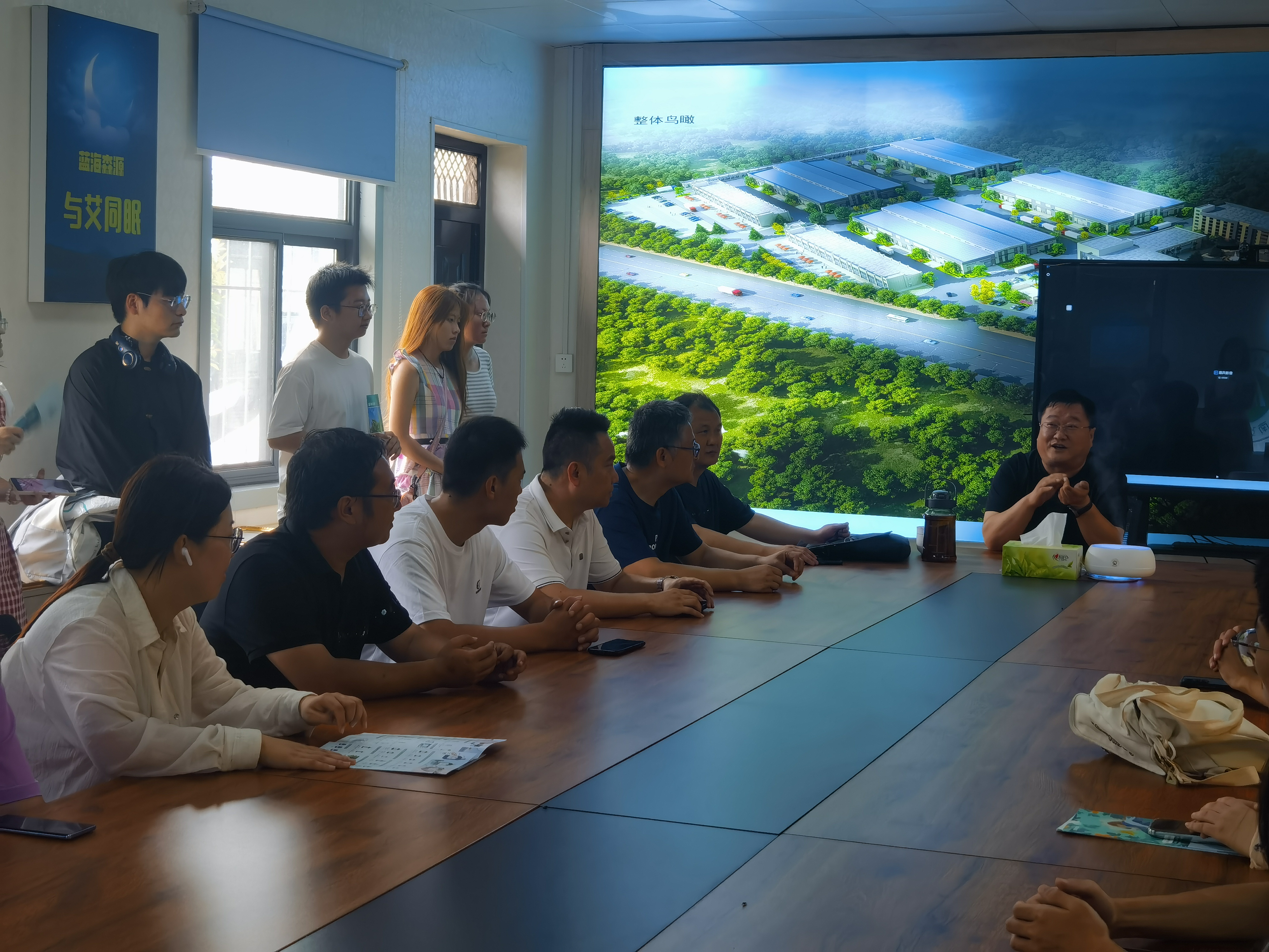 本网讯(特约记者/李浩)7月25日,范蠡商学院党委书记闫合占带队赴社旗县开展南阳理工学院数字经济产业孵化园暑期直播培训走进蓝海森源拍摄源头工厂视频环节实践活动。南阳蓝海森源医药科技有限公司生产负责人周磊、运营负责人黄光辉、办公室王月,义乌市九创直播基地总经理李兵,九创文化传媒有限公司总经理艾米,相关部门负责人以及参加暑期直播培训的全体师生参加了此次活动。
