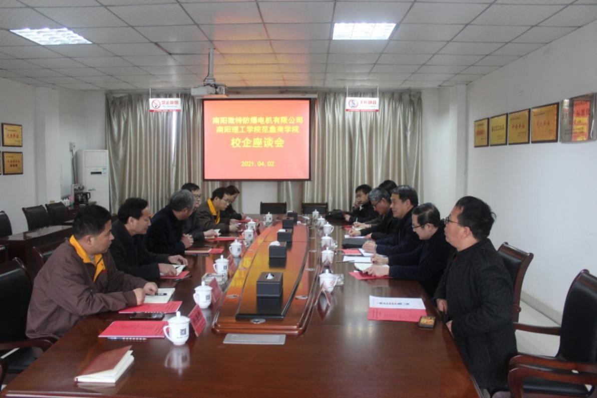 4 月 2 日,范蠡商学院党委书记张良、副院长吕晓军带领学院骨干教师团队到南阳防爆微特电机有限公司洽谈校企合作,公司董事长马红普、副董事长廖晓路及公司部分高层领导参加了此次座谈会。