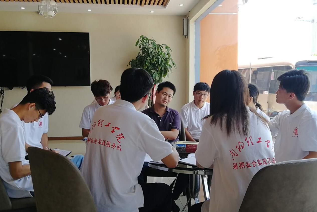 实践团队在南召县电子商务产业园倾听电子商务协会会长曹世巍有关其整体布局、建设情况、分区的功能设置和服务内容、园区定位、发展规划等解说。