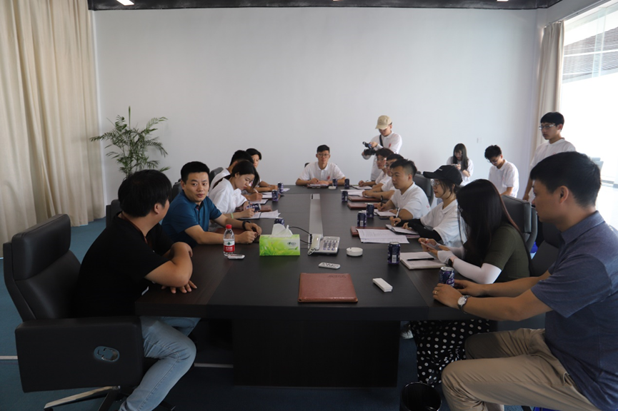 调研队与企业电商部负责人一同座谈,互相发表关于电商发展的见解。队员们利用专业知识,为企业人员介绍《电子商务法》,淘宝、京东等平台的运作规则和流程,并就企业在电商运营中出现的问题给予解决办法。