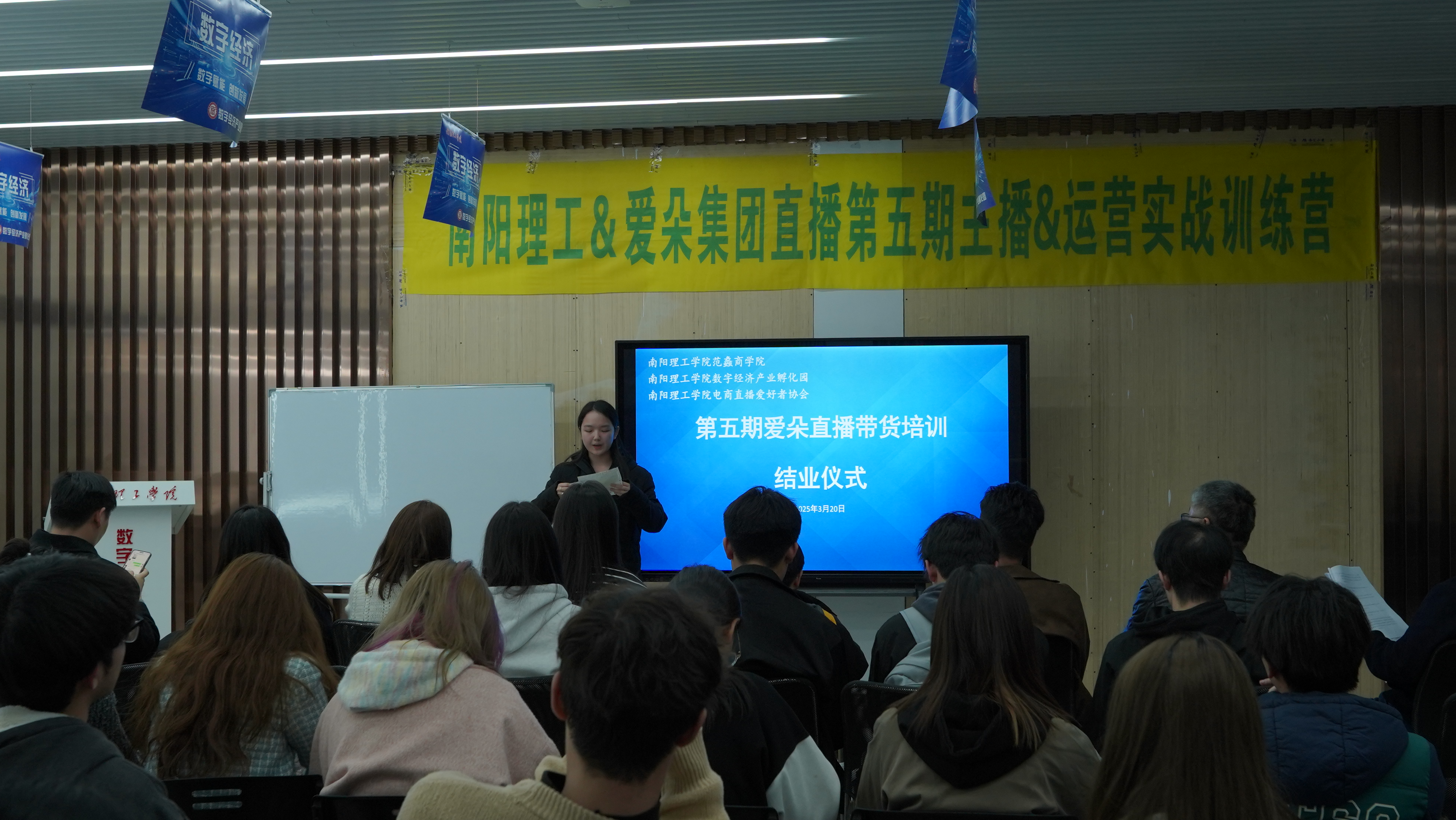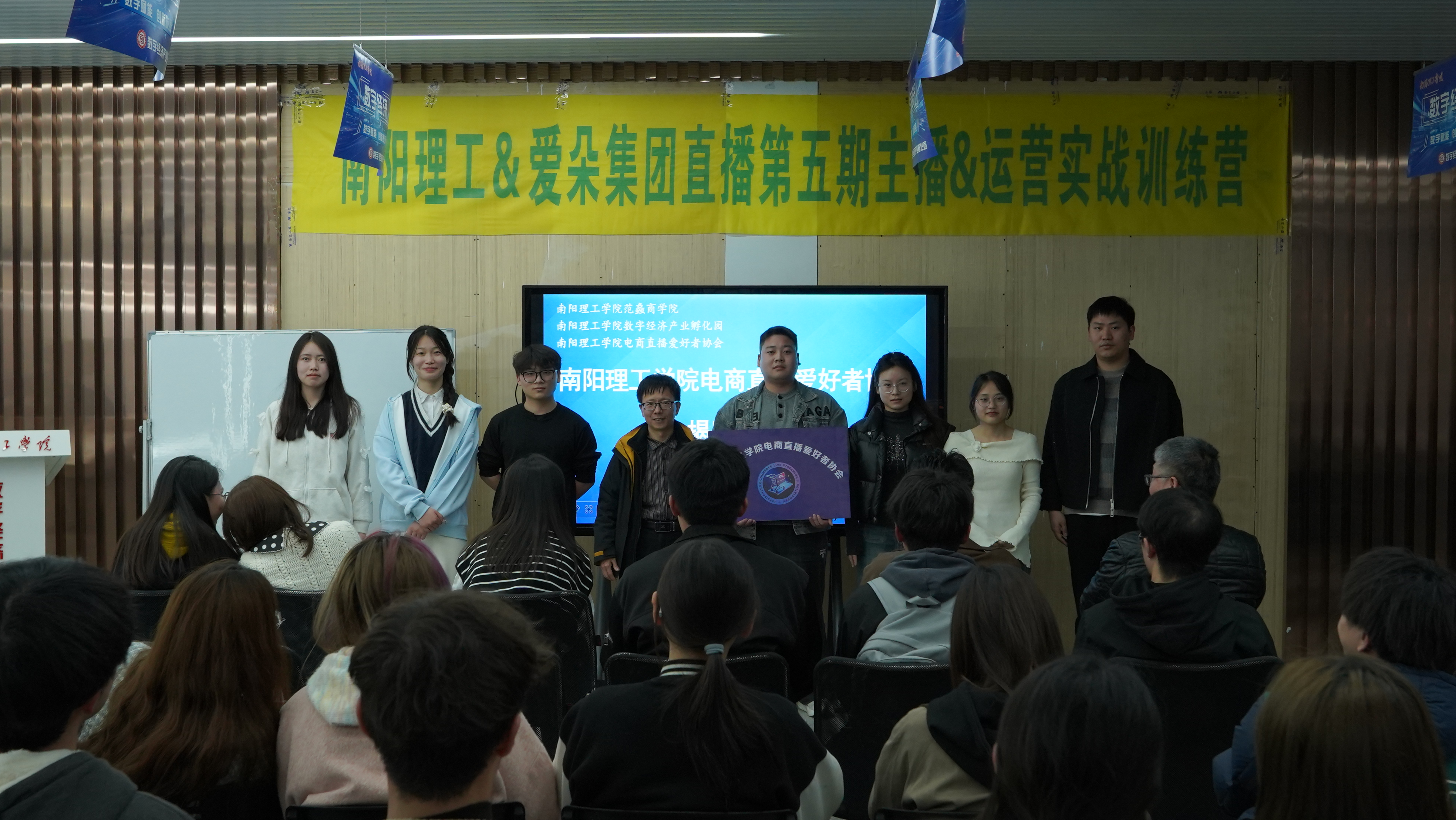本网讯(特约记者/李浩 通讯员/刘馨瑶 廖慧贤)范蠡商学院与爱朵集团杭州运营中心联合举办的爱朵直播带货第五期培训顺利结业,并于3月20日在南阳理工学院数字经济产业孵化园举行了结业仪式。范蠡商学院副院长周青浮,南阳理工学院数字经济产业孵化园执行院长樊智勇,爱朵集团杭州运营中心主播主管大丸子老师、运营主管王运老师以及范蠡商学院教师代表等参加了会议。