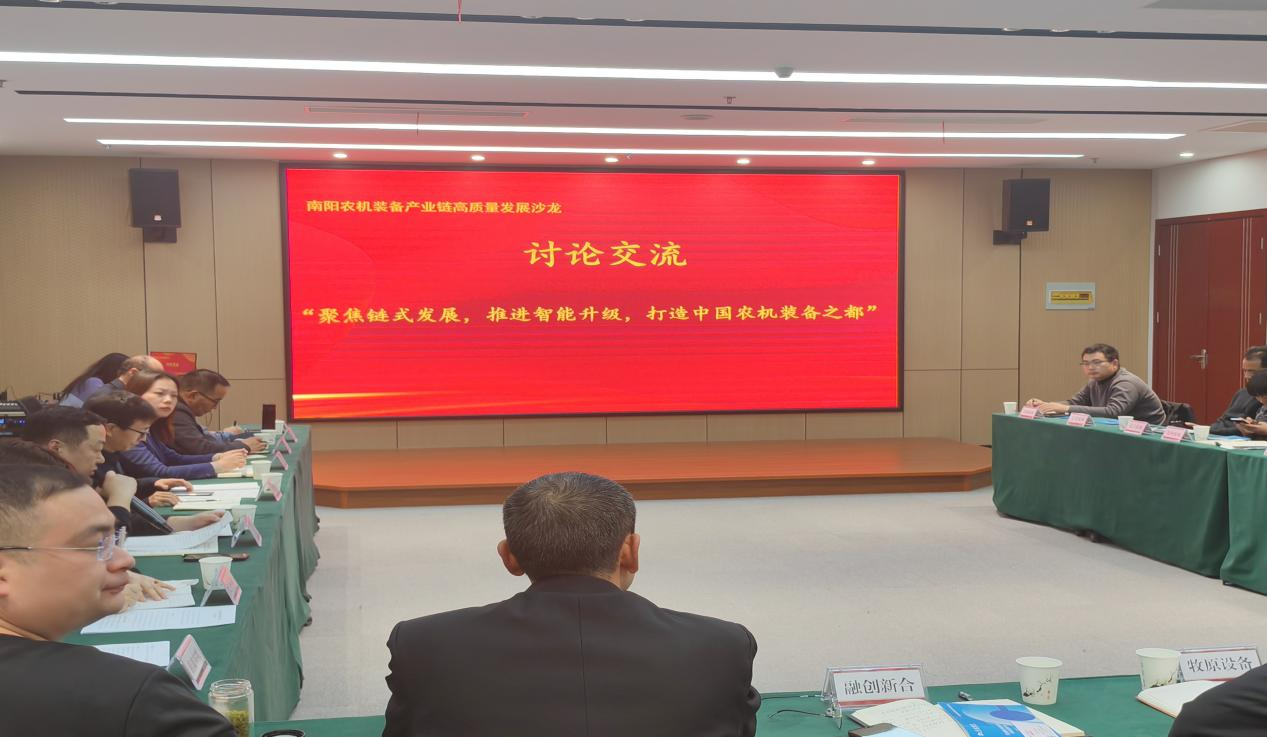 本网讯(特约记者/李玉)11月21日,以“聚焦链式发展,推进智能升级,打造中国农机装备之都”为主题的南阳农机装备产业链高质量发展沙龙在市人才服务中心举办。沙龙由南阳理工学院范蠡商学院副院长周青浮主持。南阳农机装备产业企业负责人代表、专家学者齐聚一堂,围绕产业智能升级、链式发展、创新引领等议题献计献策、共谋发展。