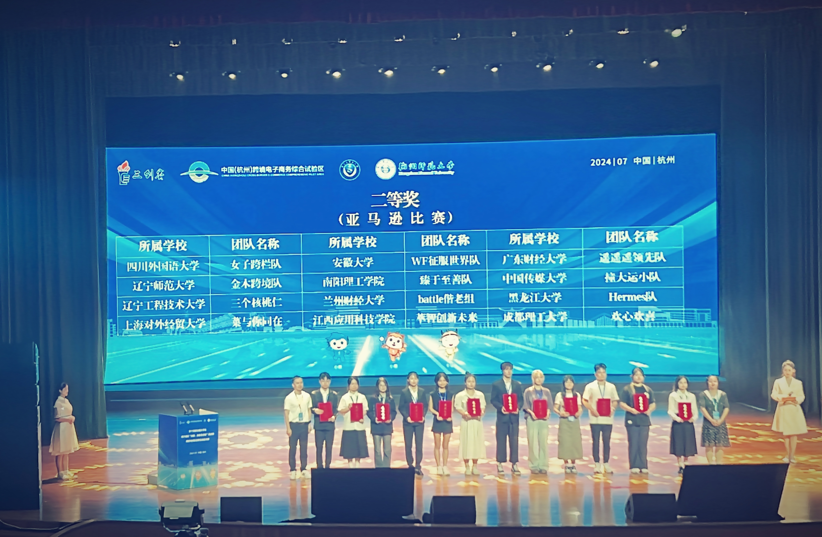 本网讯(特约记者/殷朝兵)7月12日至14日,第十四届全国大学生电子商务“创新、创意及创业”挑战赛跨境电商实战赛全国总决赛圆满落幕。本次大赛由全国大学生电子商务“三创赛”竞赛组织委员会指导,杭州师范大学承办。比赛旨在激发大学生兴趣与潜能,培养大学生创新意识、创意思维、创业能力以及团队协同实战精神。我院学子于怡佳、何尤菲、刘龙、樊慧芳组建的“臻于至善队”团队与来自中国传媒大学、四川外国语大学、济南大学等20所高校的20支队伍同台竞技,展示了当代大学生在电子商务领域的实力与潜力,最终取得跨境电商实战赛全国二等奖的佳绩,实现了南阳理工学院在该赛事的最高奖项突破!