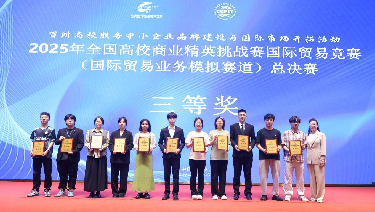 本网讯(特约记者/孙梦忆)6月6日至9日,2025年全国高校商业精英挑战赛国际贸易竞赛(国际贸易业务模拟赛道)总决赛在宁波落幕。本次国家级赛事由中国国际贸易促进委员会商业行业委员会主办,吸引全国198所高校408支队伍参赛。范蠡商学院代表队凭借扎实的专业能力、创新的展位设计与出色的商贸谈判表现,与众多高校激烈角逐,最终荣获全国总决赛二等奖1项、三等奖1项,并获得“最佳院校组织奖”。