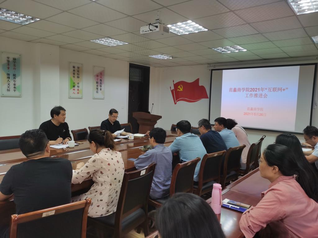 5月26日,范蠡商学院在会议室召开2021年“互联网+”工作推进会,范蠡商学院党委书记张良、副院长吕晓军、各教研室主任以及部分教师代表出席了此次会议。