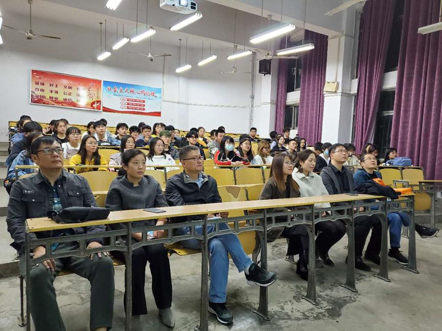范蠡商学院国际经济与贸易教研室主任吴信科、国际商务教研室主任吕红、市场营销教研室主任樊智勇、学院部分专业教师,河南普泰机械设备有限公司外贸主管赵中美、外贸经理郭静、外贸经理李铭涵,以及国际经济与贸易、国际商务专业部分学生共200多人参加了学习活动。