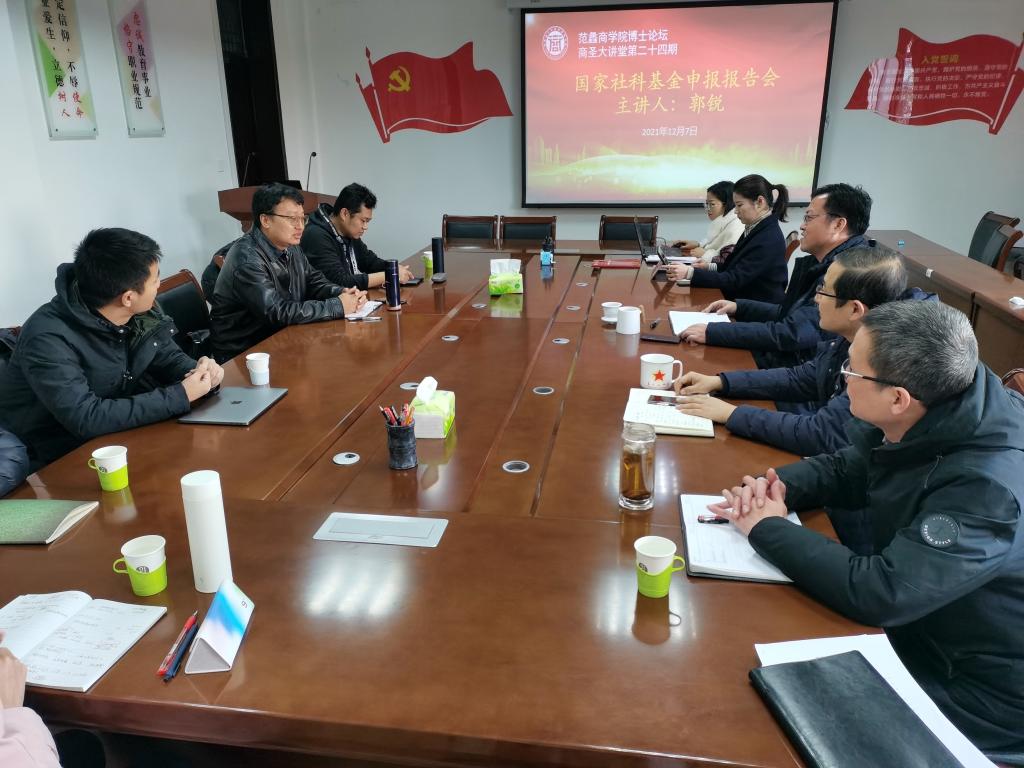 学院负责人指出,学院本着“突出学院研究特色、建设科研梯队团队、深入开展科研活动、形成学院学术影响”的科研工作思路,成立了绿色发展、乡村振兴、县域电商、南水北调四个科研团队,制定了《范蠡商学院科研团队管理办法》,强化青年博士教师科研能力提升,以促进协同、推进创新为目标,以任务为牵引、项目为纽带,以责权相应、风险共担、成果共享开展科研团队工作,促进科技攻关和创新科学研究。学院充分发挥博士论坛、商圣大讲堂等学术交流平台举办学术交流活动,邀请外部专家学者分享学术动态和理论研究前沿,激发广大青年博士教师科研工作积极性和提高青年博士教师科研工作能力。学院积极邀请知名专家学者来院讲学,在国家社科基金项目申报项目选题、文献梳理、撰写思路、研究方法等进行把脉问诊和深入指导,有效提高教师们撰写成果的质量。