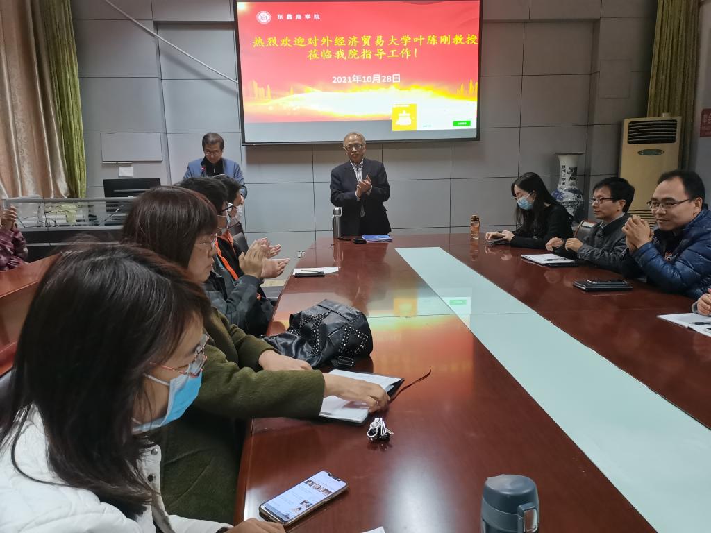 本网讯(特约记者/李浩)10月28日,对外经济贸易大学叶陈刚教授来校做学术报告会暨商圣大讲堂第二十四期,范蠡商学院部分专业教师和财务管理专业学生100多人参加了报告会。