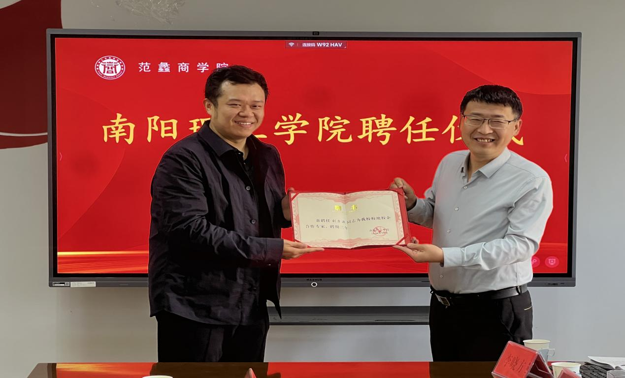常军乾为成金华教授颁发“南阳理工学院客座教授”聘任证书。