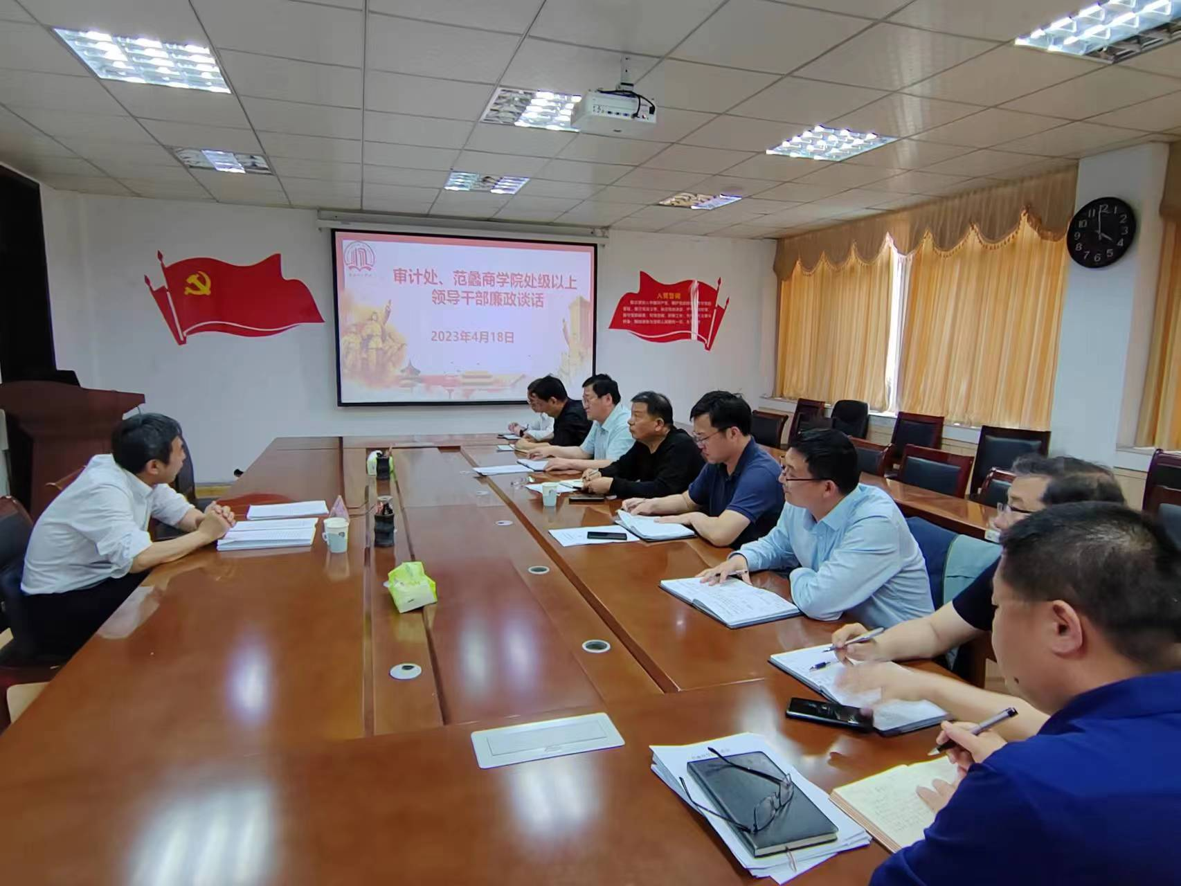 本网讯(特约记者/赵明铎)4月18日,校长安士伟与审计处、范蠡商学院全体处级干部集中开展廉政谈话,并与联系学院、分管部门中层正职签订2023年度党风廉政建设责任书。