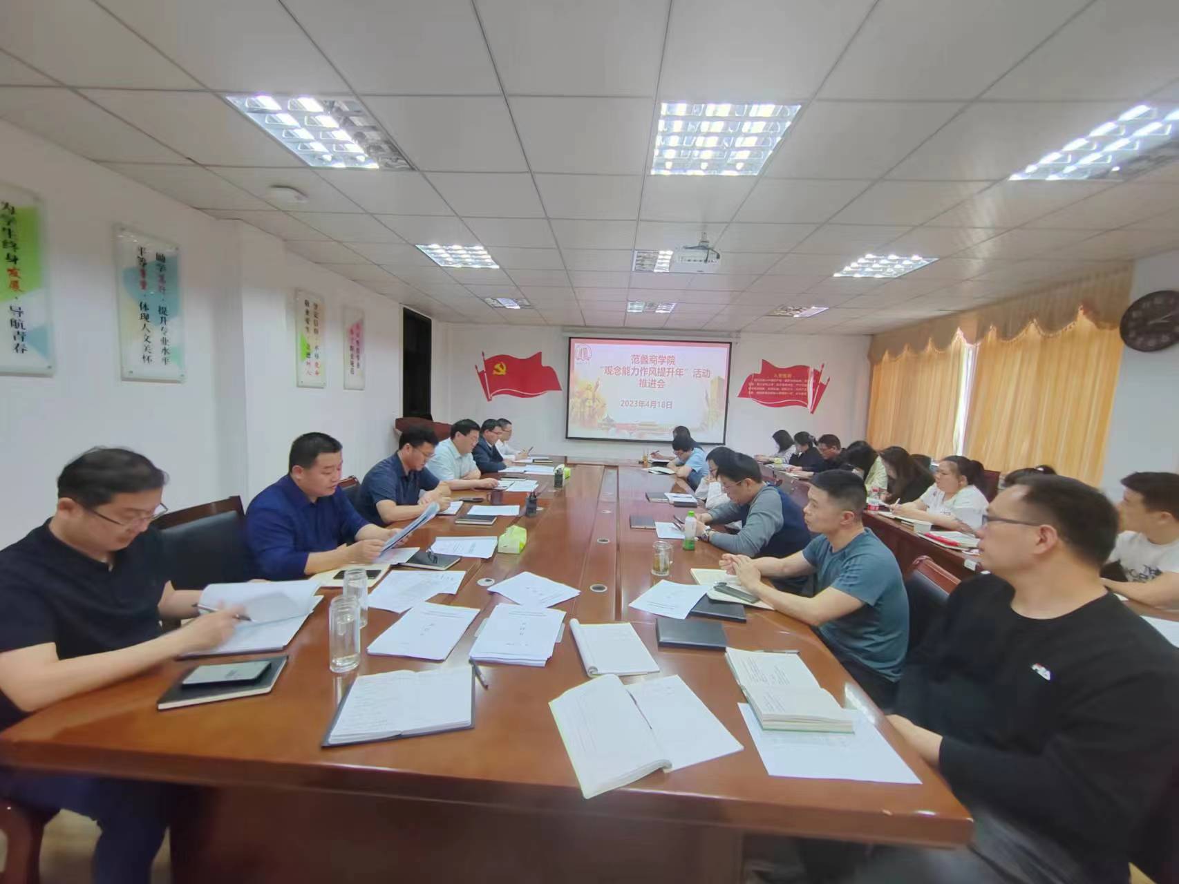 本网讯(特约记者/王健平)4月18日,范蠡商学院召开“观念能力作风提升年”活动推进会,会议旨在动员全院党员干部弘扬“四敢”精神,践行“四个极限”,把状态提起来,把劲头鼓起来,把本领强起来,把作风实起来,切实推动学院高质量发展。范蠡商学院全体科级以上干部和支部书记参加会议。