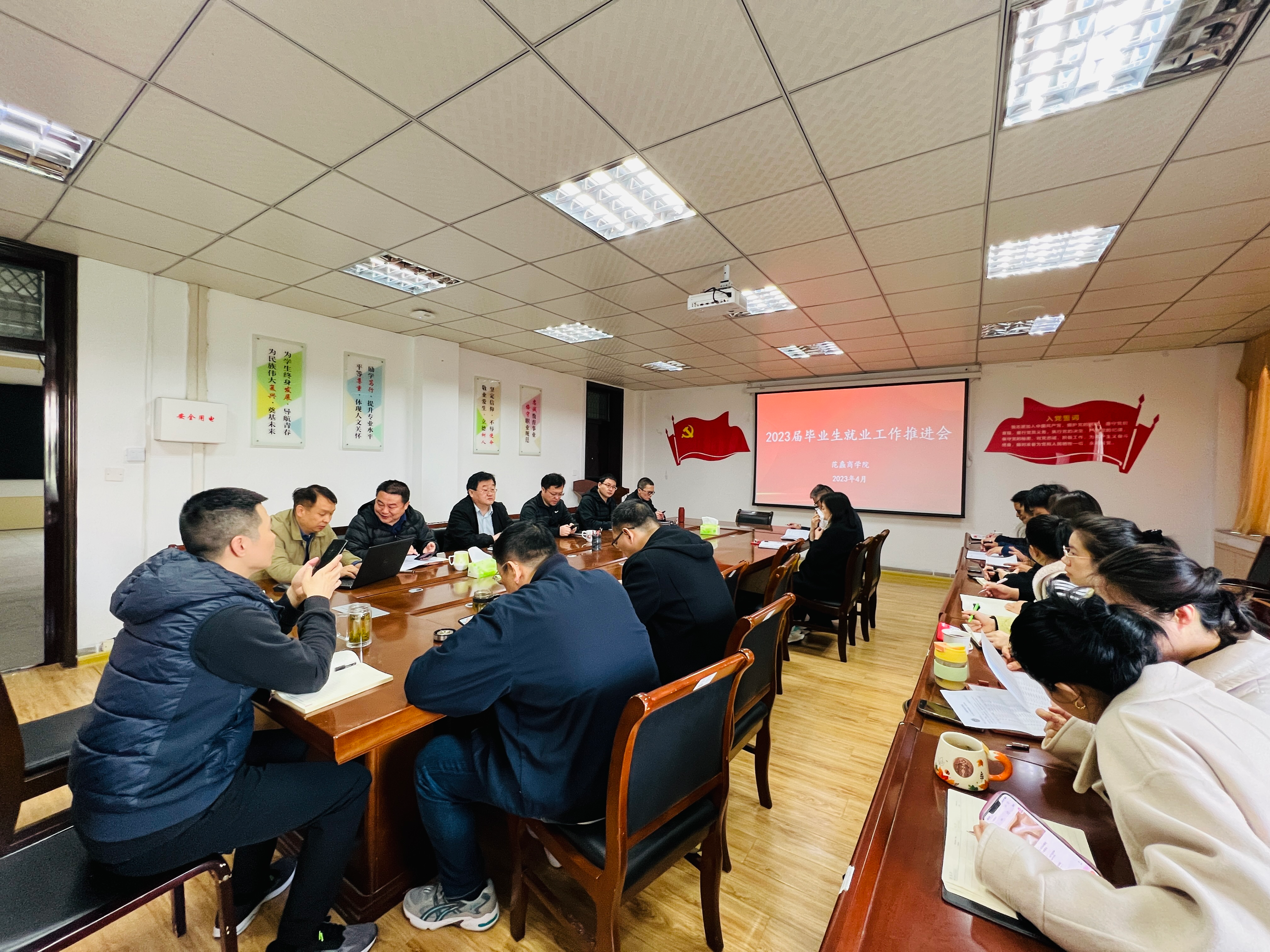 本网讯(特约记者/殷朝兵)4月25日,范蠡商学院召开2023届毕业生就业工作推进会,范蠡商学院党委书记闫合占、院长吴战勇、副书记李冬生、副院长郭永奇、党政军、学院科级干部、毕业班辅导员参加会议。