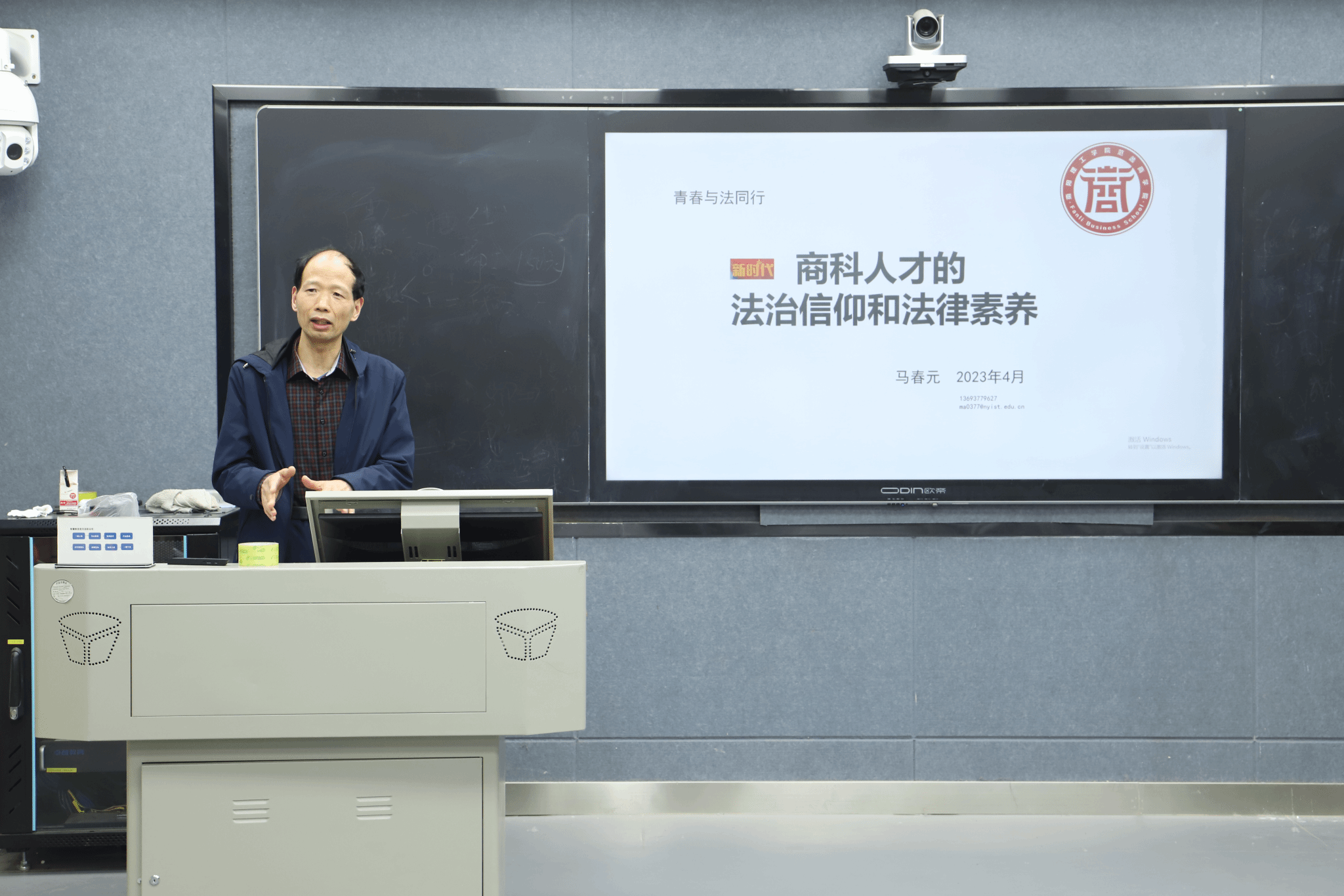 为深入学习贯彻习近平法治思想,推动普法教育宣传工作,范蠡商学院开展“法治教育宣传周”专题普法教育活动,于4月27日邀请法学副教授马春元老师在1315教室给同学们带来了一堂《青春与法同行 新时代商科人才的法治信仰和法律素养》普法讲座,为范蠡商学院广大学生培育法治理念,普及法律知识。