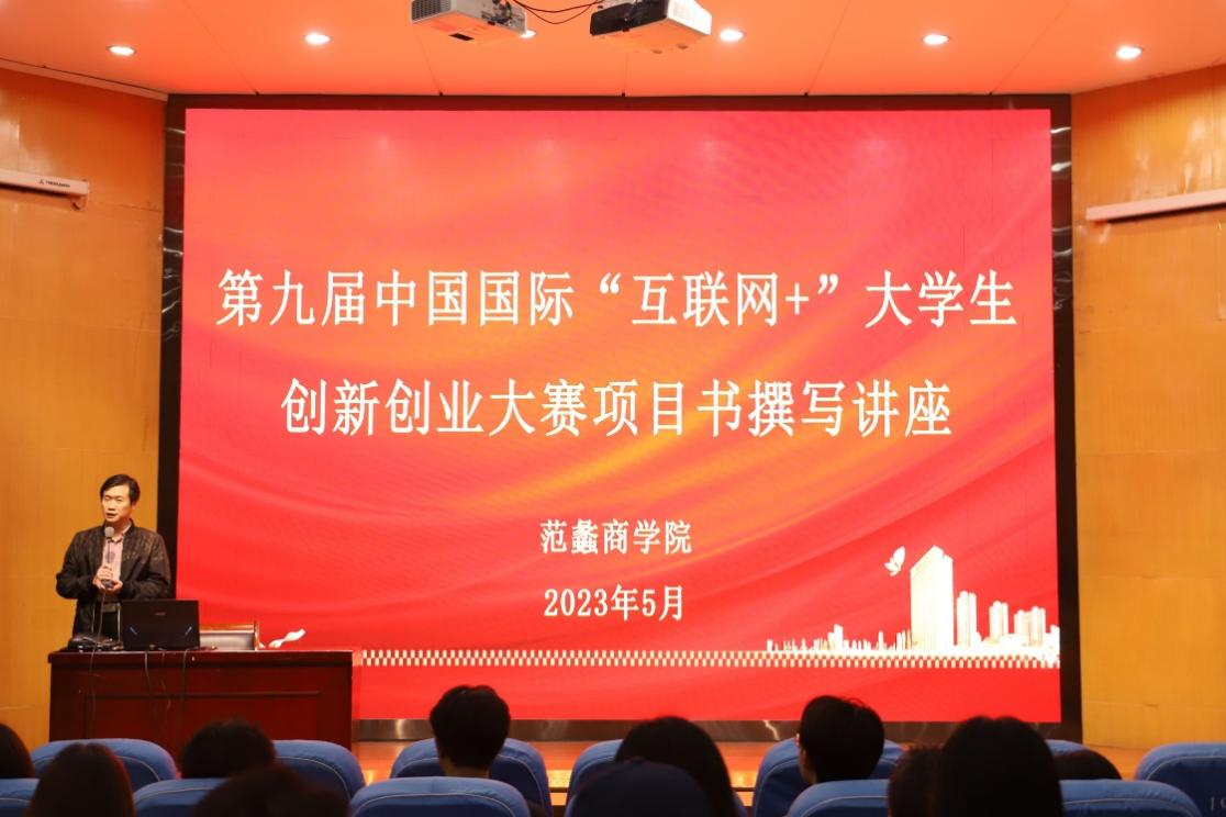 本网讯(通讯员/徐妙言)为充分做好第九届中国国际“互联网+”大学生创新创业大赛的参赛准备和项目培育工作,5月26日晚,范蠡商学院于西北校区第二报告厅召开第九届中国国际“互联网+”大学生创新创业项目申报书撰写讲座。讲座邀请范蠡商学院学科竞赛骨干教师向建国作为主讲人,全院预申报项目负责人参会。