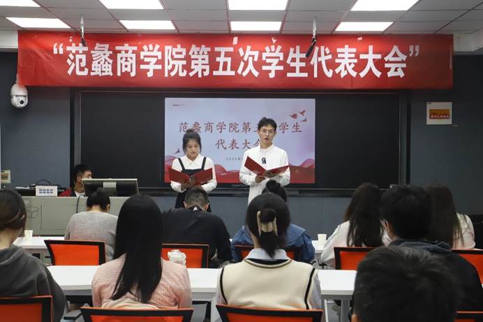 本网讯(通讯员/刘佳宁)青春筑梦正当时,理想领航新征程。9月26日晚,范蠡商学院在1315教室召开第五次学生代表大会。范蠡商学院党委副书记李冬生、团委书记董博、团委副书记张雨爽、全体辅导员老师以及学生代表参加此次大会。