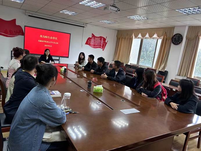 为持续推进“学党史悟思想办实事开新局”学习教育走深走实,积极开展“我为师生办好事办实事”主题实践活动,想同学之所想,急同学之所急,解同学之所难。发挥学生党员自身优势,为学校广大师生服务,秉持服务初心,将服务同学落到实处。9月19日,我院第五学生党支部开展“我为师生办好事办实事”故事分享主题党日活动。