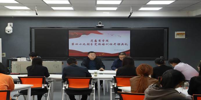 本网讯(通讯员/姚春兰)10月24日下午,范蠡商学院在1号教学楼315智慧教室举办范蠡商学院第四十九期党校培训班开课典礼,党委书记闫合占、党委副书记李冬生和学生党支部书记参加。