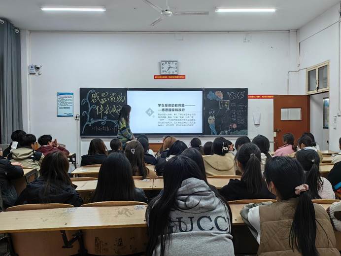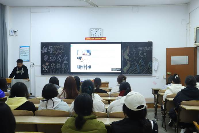 班会伊始,各班班会负责人向班级同学详细解读了国家、学校奖助学金的相关政策及其重要意义,帮助更多同学进一步深入学习党和国家、学校的各类学生资助政策,了解评审条件和程序。随后,国家奖助学金获得者代表依次上台进行发言,他们结合自身的学习生活经历,向同学们讲解政策的同时,明确自身享受的权利与承担的义务,引导同学们对奖助学金要有正确的认识。他们说道,作为一名受到国家资助的新时代大学生,非常感谢国家和学校的关心和关怀,肩负着实现国家伟大复兴使命的大学生,应该拥有远大理想,常怀感恩之心,受助思源,努力拼搏,让生命绽放出五彩斑斓的光芒。