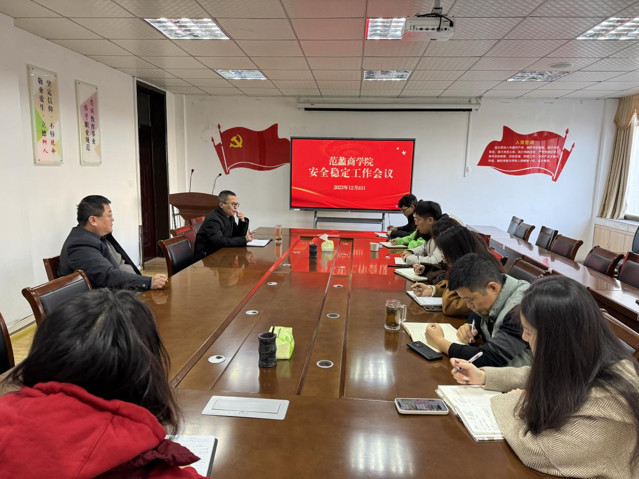 本网讯(特约记者/王健平)为进一步强化校园安全管理,落实安全工作责任,12月6日上午,范蠡商学院召开安全稳定工作会议,对今冬明春的相关安全稳定工作进行部署。学院党委书记闫合占,副院长党政军,党政办、实验室、学工办相关责任人参加会议。