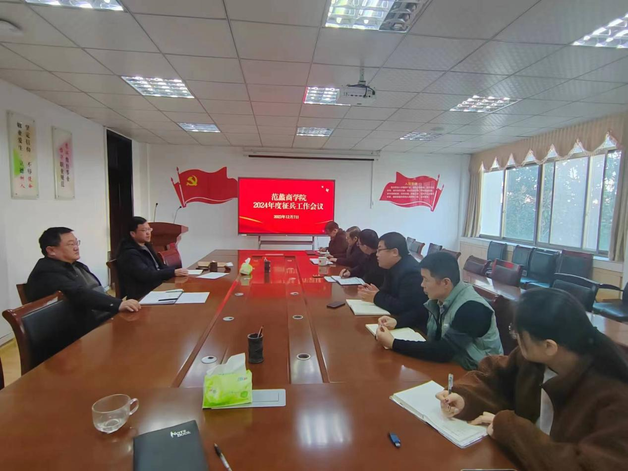 本网讯(特约记者/王健平)12月7日上午,范蠡商学院召开2024年度征兵工作会议,学院全体班子成员、相关责任老师参加会议。