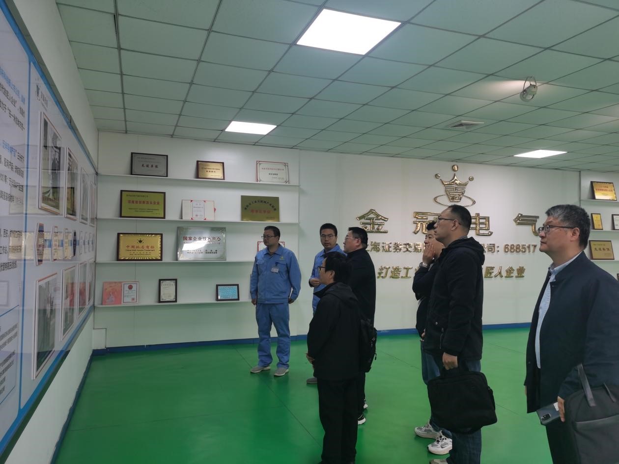 考察组人员在金冠电器股份有限公司销售部经理王强强、人力资源部部长王珍珠的引导下参观了公司厂区并了解了公司目前经营状况。