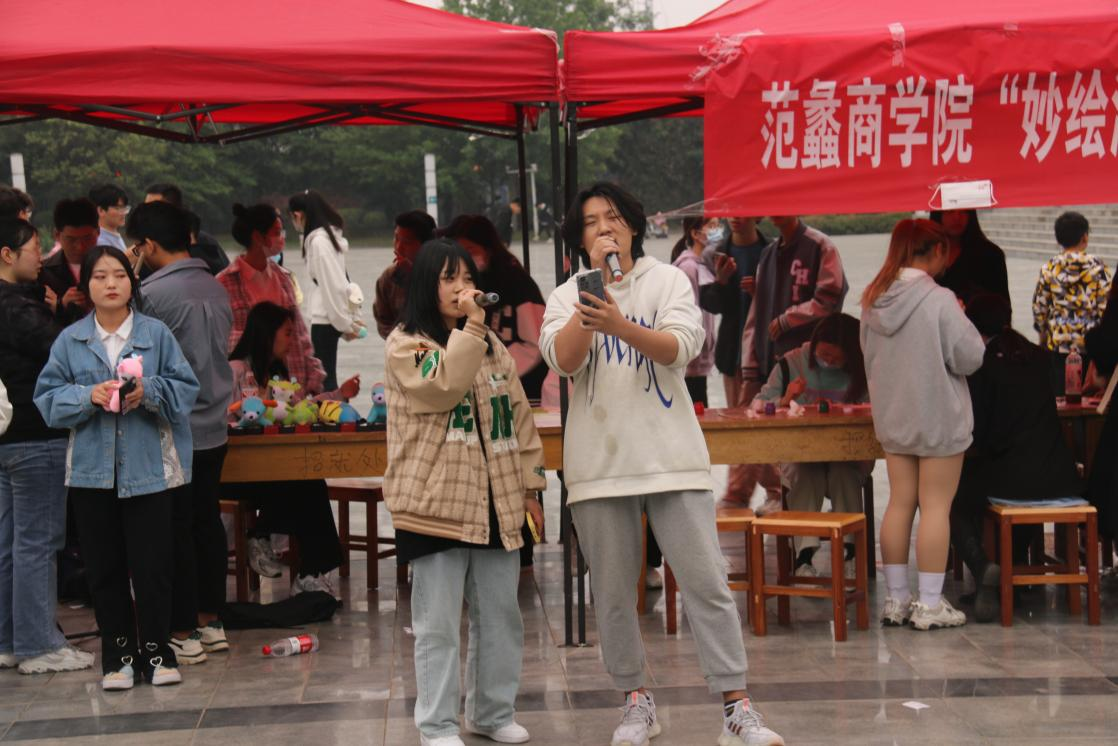 本网讯(通讯员/张清慈)疫情防控期间,我校实行封闭管理。在这个特殊时期,为加强校园精神文明建设,丰富校园生活,营造健康积极的文化生活氛围,体现新时代大学生诠释自我、展示自我的生活态度。范蠡商学院于4月30日下午在体育馆东侧举办“妙绘激昂青春志抗击疫情我先行”主题校园广场文艺活动。