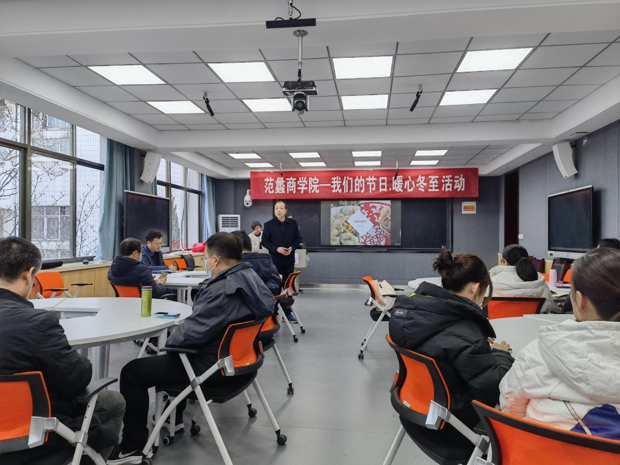 12月21日下午,范蠡商学院在1教131组织开展“我们的节日,冬至暖心”活动。学院班子成员及部分教师参加活动。