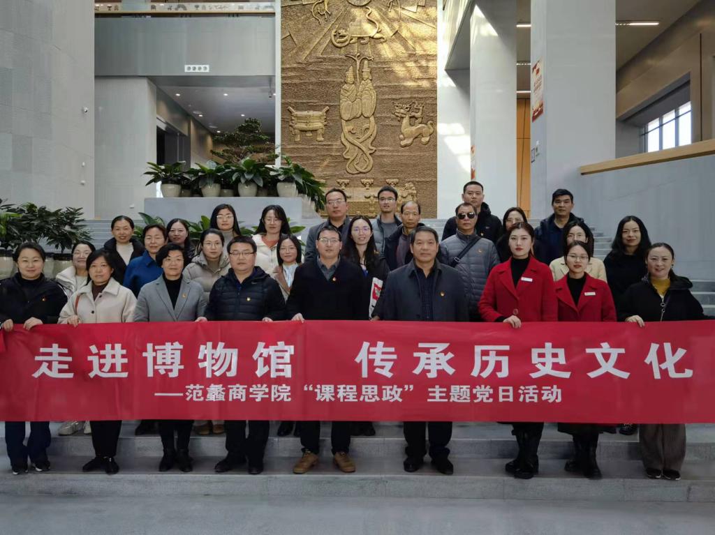 (特约记者郭永奇)为进一步贯彻落实全国高校思想政治工作会议精神,探索课程思政建设的有效路径,范蠡商学院教师党员在学院党委书记张良的带领下于12月3日开展了以“走进博物馆,传承历史文化”为主题的课程思政主题党日活动。