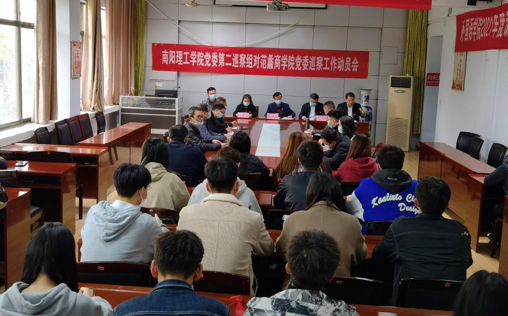 10月25日上午,南阳理工学院党委第二巡察组对范蠡商学院党委巡察工作动员会在1号教学楼215会议室召开。校党委第二巡察组组长杨少文,副组长刘兴武同志、肖邓华等巡视组成员参加,范蠡商学院领导班子成员及副科级以上干部、教师代表、学生代表参加了会议。范蠡商学院党委书记张良主持会议。
