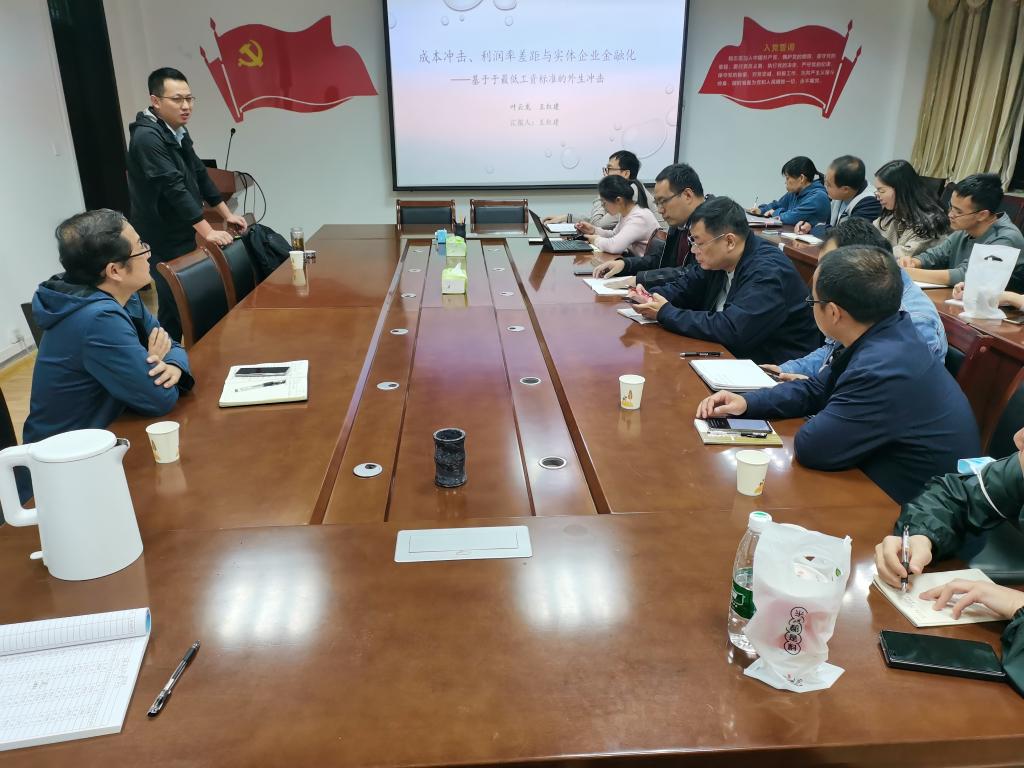 本网讯(特约记者/李浩)10月11日,范蠡商学院举行商圣大讲堂二十二期、范蠡商学院博士论坛,江西财经大学博士生导师、上海财经大学博士后王红建教授作主题为《成本冲击、利润率差距与实体企业金融化——基于最低工资标准的外生冲击》的学术报告,范蠡商学院全体博士参加报告会。