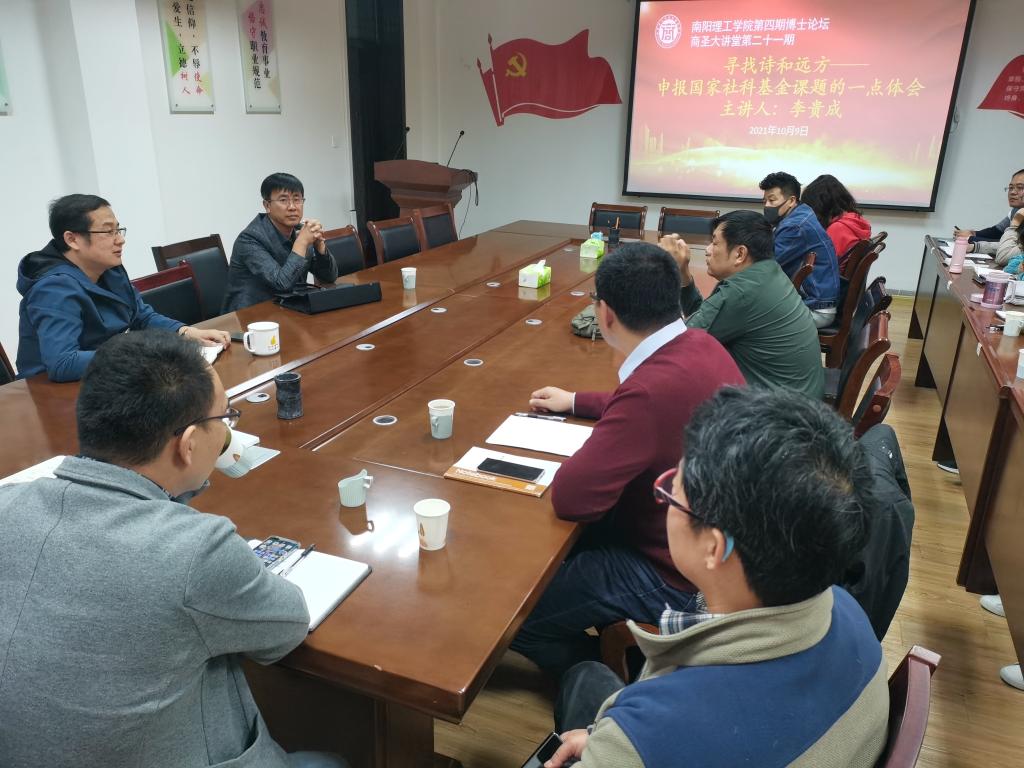 李贵成从科研工作者的梦想立题,系统地从科研工作者不忘初心的使命和责任、秉承匠心的“疑、求、悟”三个阶段、坚持恒心方能云开等内容深入浅出地介绍了申报国家社科基金课题的科研工作实践体会。报告会结束后,李贵成结合参会博士教师关心的科研问题进行了深入的交流。