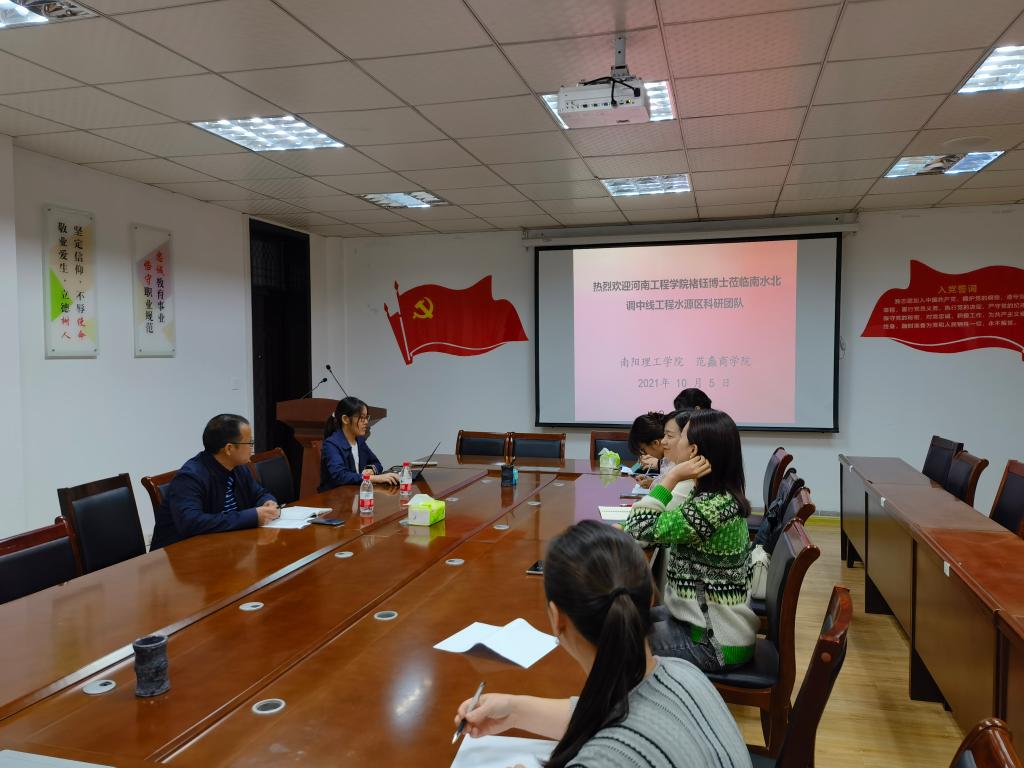 南水北调科研团队:10月5日晚上6:00在1331会议室举行了学术活动。南水北调科研团队邀请河南工程学院褚钰博士做了主题为如何提高各类项目申报成功率的学术报告,及朱九龙做了主题为社科类项目申报及南阳市科技局项目申报安排的学术报告。