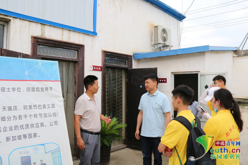 图为队员与企业负责人面对面交谈。中国青年网通讯员 杨志豪 摄