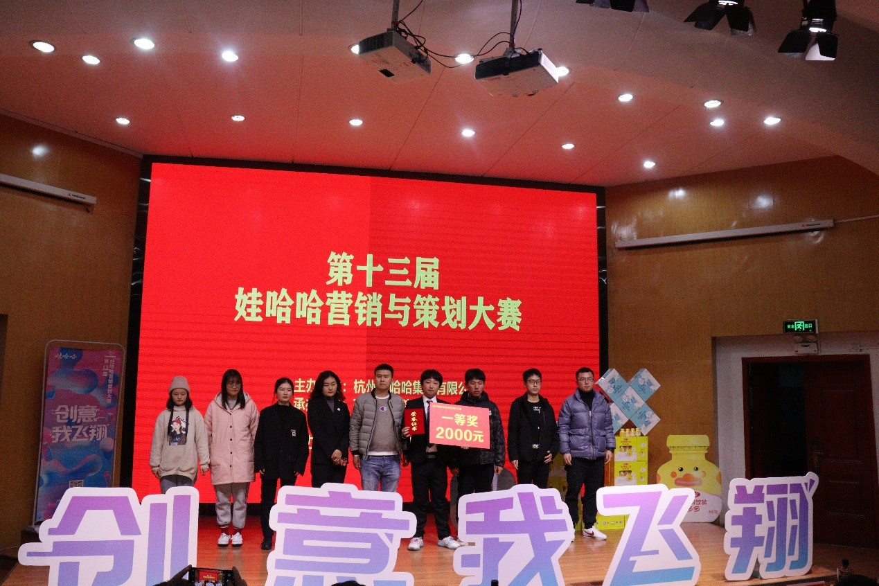 本网讯(通讯员/李若彤)2020年11月24日晚,由我校范蠡商学院与娃哈哈公司联合举办的第十三届“创意我飞翔”娃哈哈营销策划大赛在领创空间报告厅举行。娃哈哈公司省级拓展总监陈二建、区域经理唐杰、校团委书记郭兴华、党委学生工作部副处长白林驰、范蠡商学院党委书记张良、院长吴战勇等出席此次赛事。