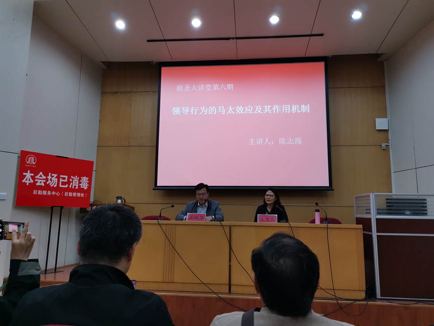 另悉,本次活动是范蠡商学院主办的“商圣大讲堂”第六期,“商圣大讲堂”是该学院打造的学术交流平台,设置有学术前沿、范蠡思想、商学名家等板块,目的是为提高教师专业能力和素养,开拓学术视野,活跃学术思想,追踪学科动态,营造良好学术氛围。