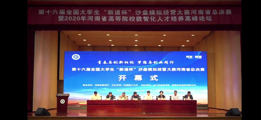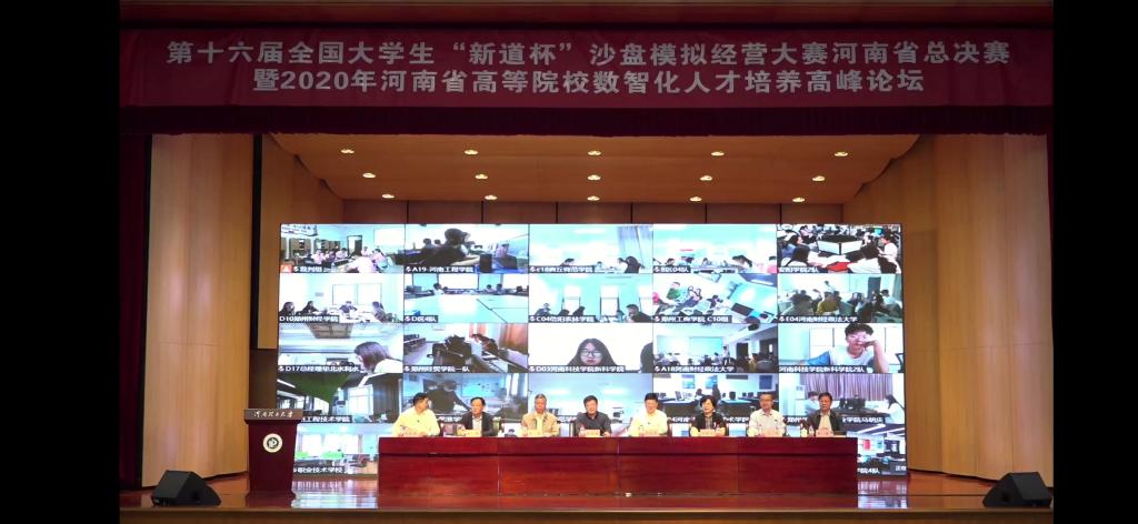 本网讯(学生记者/刘艳慧 欧阳健婷)9月27日,由中国商业联合会和中国职业技术教育学会商科专业委员会主办,河南理工大学承办的第16届全国大学生“新道杯”沙盘模拟经营大赛河南省总决赛在线上举行。