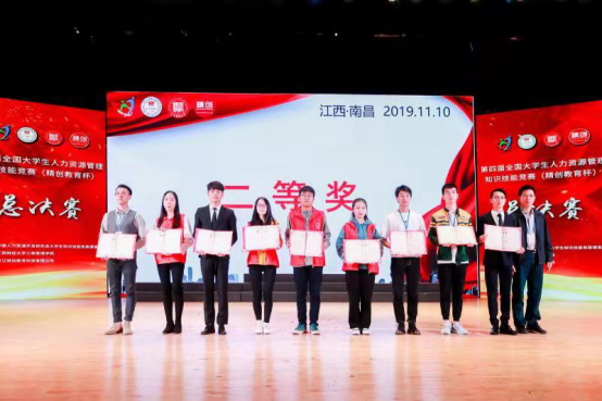(特邀记者田进军)2019年11月9日至10日,第四届全国大学生人力资源管理知识技能竞赛总决赛暨高峰论坛在江西财经大学举办。大赛由中国人力资源开发研究会主办,江西财经大学承办,浙江精创教育科技有限公司提供技术支持,我院代表队在决赛中荣获二等奖。