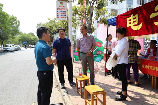 金秋九月,是一年一度新生入学的日子,学子挥别十年寒窗,背起行囊,走入南工,开始新的征程。电商学院一贯关注来自贫困县区的学生,采取多元化帮扶措施,帮助贫困学子更好的完成学业。为给这些贫困学子提供更体贴的服务,9月6日上午,电商学院党总支书记逯忆、团学办主任白林驰来到九教楼下迎新接待处,迎接来自周口鹿邑县某贫困村的新生,与新生近距离的交流,了解新生情况,帮助新生完成登记注册并向介绍校园情况。