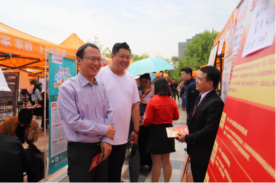 本网讯(通讯员/尹亚琦)为了切实加强毕业生与用人单位的沟通,更好地为双方搭建双向选择的平台,积极向社会输送应用型人才。5月15日,电子商务学院联合音乐学院、文法学院、经济管理学院、生物与化学工程学院、软件学院、数学与统计学院、艺术设计学院、计算机与信息工程学院、电子与电气工程学院在我校齐贤广场举办2019年春季大型十院联合招聘会。千峰科技,中国人寿、链家集团、牧原集团、想念集团,中信储蓄、浦发银行等来自北京、深圳、上海、郑州、南阳等地共29家企业前来招聘。提供就业岗位300个,涉及学院专业对口的岗位有市场营销、国际贸易、电子商务等。电子商务学院党总支书记逯忆、就业专干赵杰亲自到场指导毕业生应聘,百余名学生前来应聘。