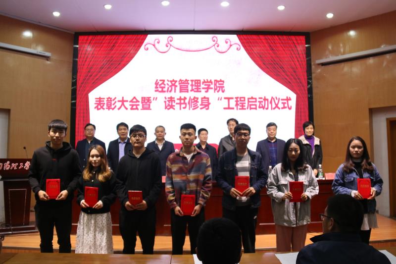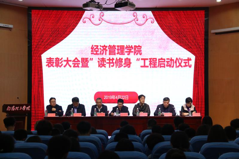 本网讯(特约记者田进军董博通讯员/张丽莫帆)4月22日晚,经济管理学院表彰大会暨“读书修身”工程启动仪式在中关村二楼报告厅举行。校图书馆馆长安新华教授、校团委书记康磊、校学生处副处长赵东江、经济管理学院院长姜保雨、党委书记张良、副院长李晓霞和300名教师、学生代表参加。大会由张良主持。