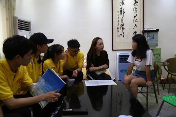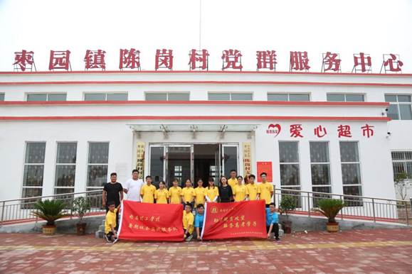 7月5日,服务队前往枣园镇陈岗村,校团委书记康磊和电商学院党总支书记逯忆前来为队员们送行送行。