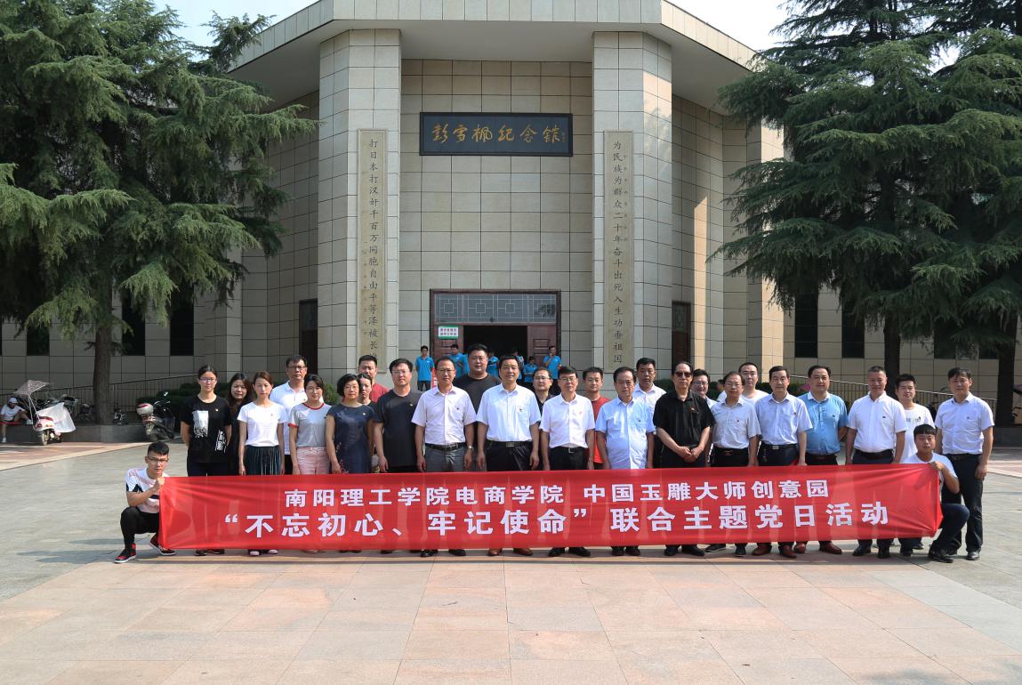 本网讯(通讯员/叶磊)7月1日,在中国共产党成立97周年纪念日当天,电子商务学院联合中国玉雕大师创意园,在彭雪枫纪念馆开展党日主题活动,重温入党誓词,接受革命传统教育。副校长张伟,校党委委员、党委组织部部长董豪,校党委委员、党委统战部部长于元明,镇平县委组织部副部长李珂,中国玉雕大师创意园党支部书记周超举,电商学院党总支书记逯忆、副院长吴战勇,电商学院教工党支部、学生党支部、中国玉雕大师创意园党支部党员代表30余人参加活动。